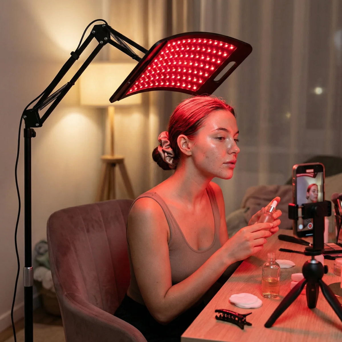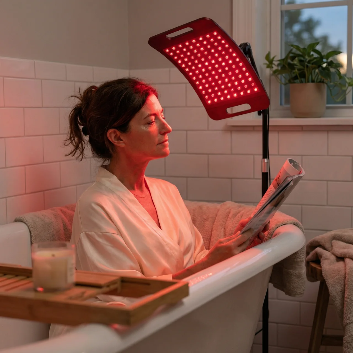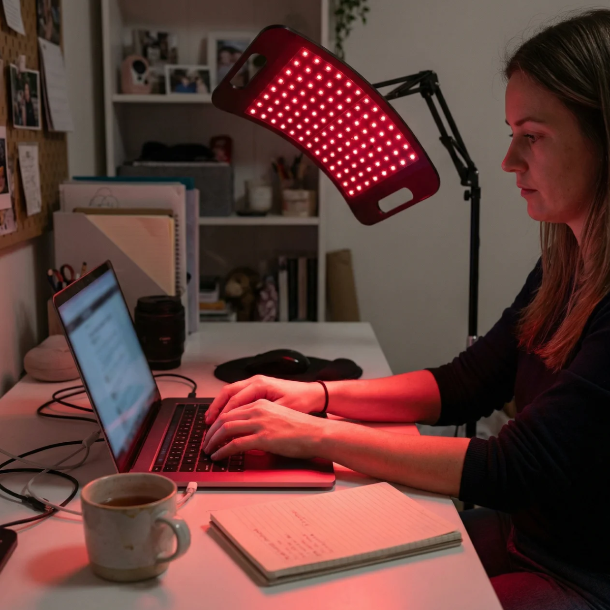 660 nm roodlicht dringt dieper door en stimuleert collageen en elastine voor een stevigere huid.