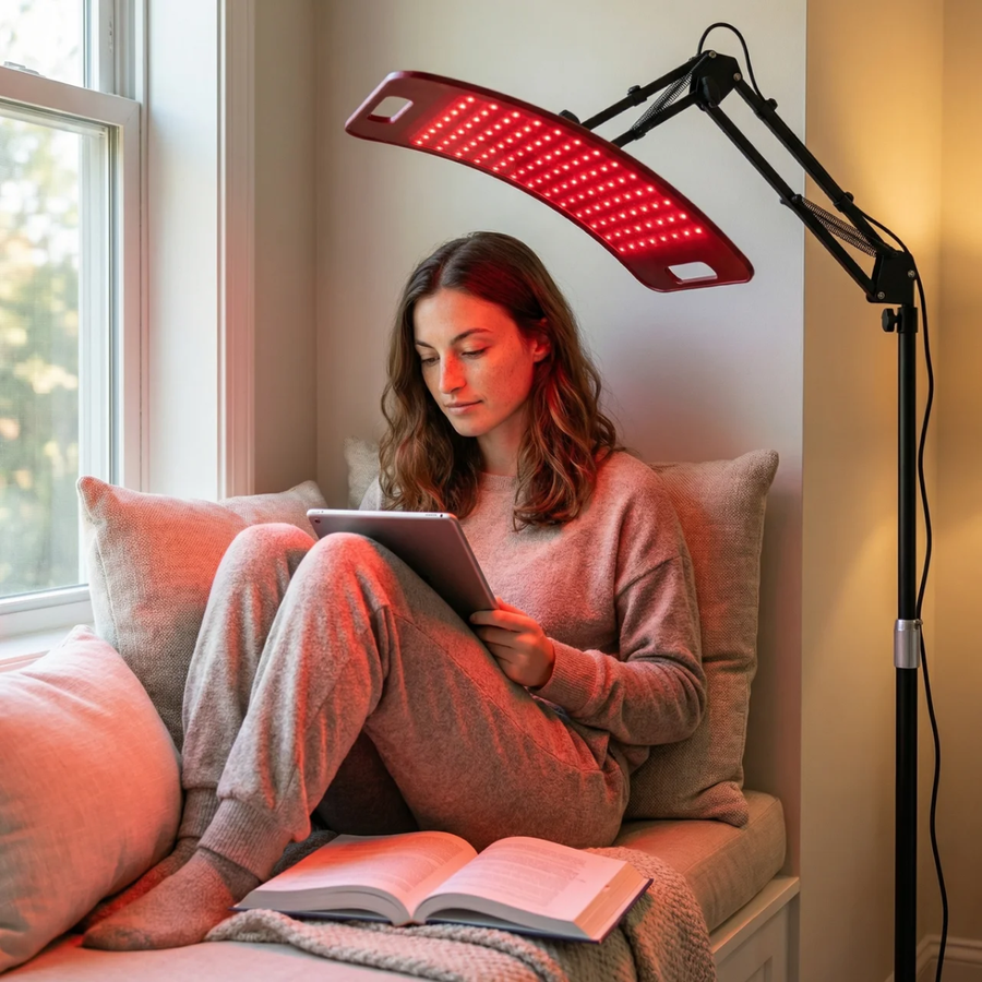 De verstelbare 360° standaard maakt het eenvoudig om elk deel van het lichaam te behandelen – van gezicht tot knieën en van nek tot onderrug. Je hoeft de lamp alleen in te pluggen en hij is direct klaar voor gebruik. Er zijn geen ingewikkelde instellingen of opwarmtijden nodig, waardoor je op elk moment van de dag kunt profiteren van een gerichte lichtbehandeling.