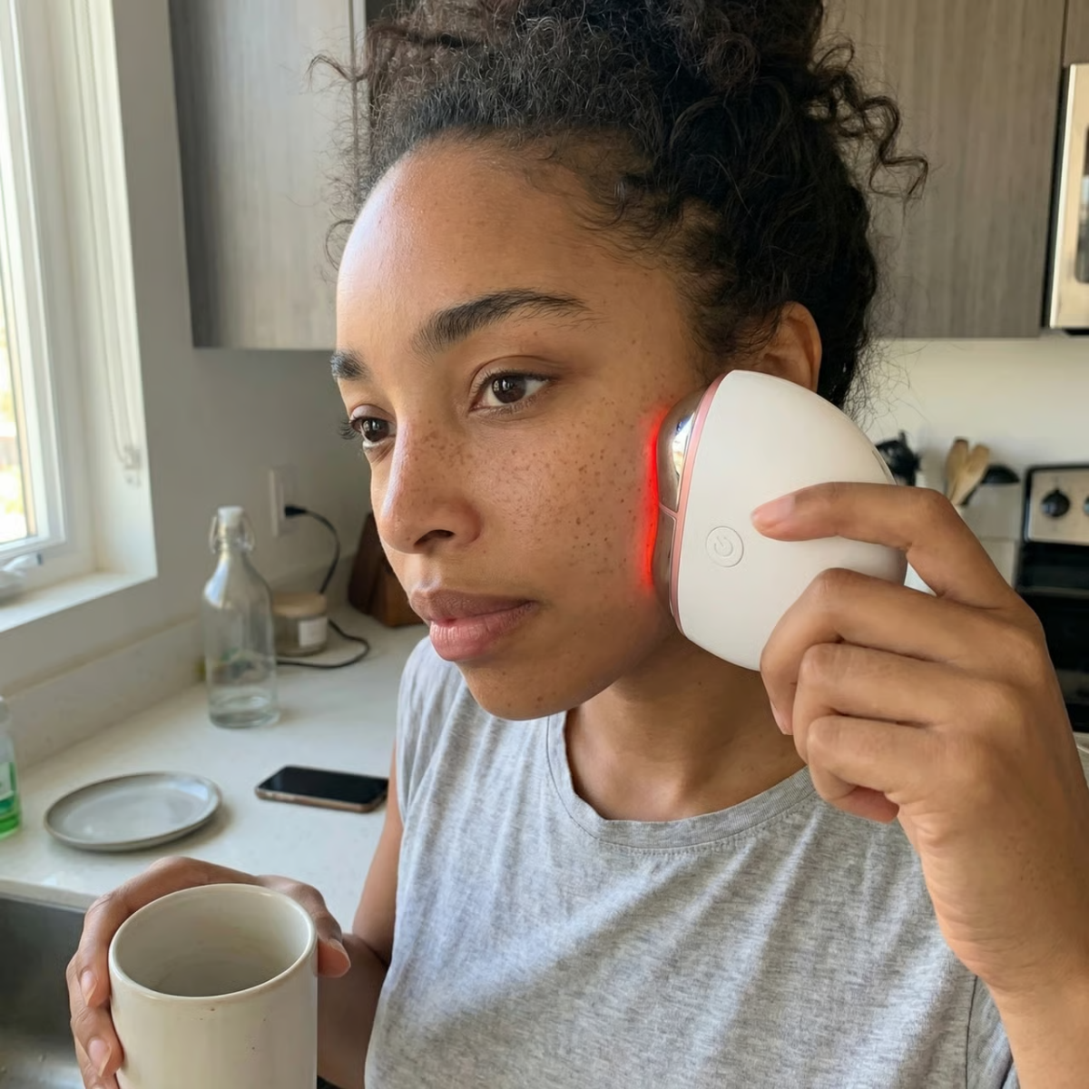 De Mvolo EMS Gua Sha maakt gebruik van drie kleuren LED-licht, verwarmende therapie en EMS-spierstimulatie om je huid te liften, te kalmeren en te verjongen. Zo verbeter je niet alleen de doorbloeding, maar stimuleer je ook de aanmaak van collageen en elastine – de bouwstenen van een jeugdige huid.