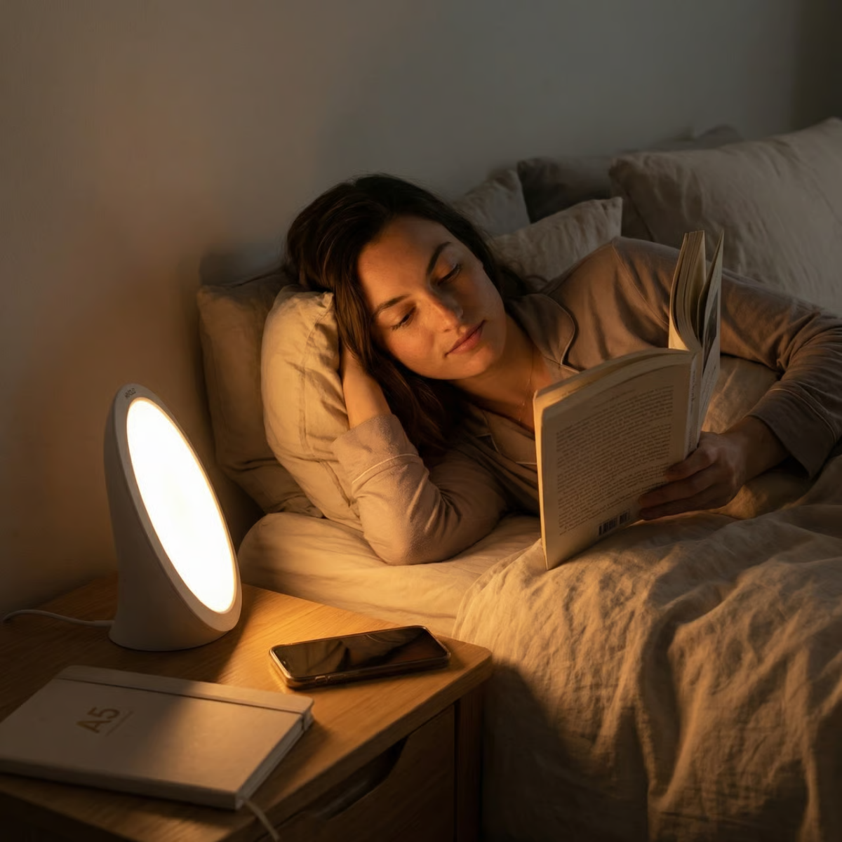 De Lucent Rise maakt lichttherapie toegankelijk voor iedereen. Dankzij het compacte ontwerp past hij perfect op elk bureau, nachtkastje of zelfs in je tas – ideaal voor onderweg.