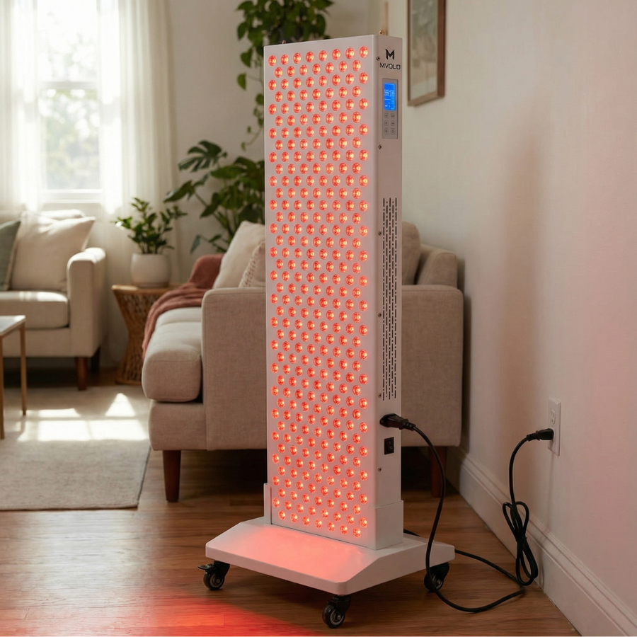 Er is niets frustrerender dan wakker worden met stijve spieren, een vermoeid lichaam of een huid die haar glans verliest. Pijn, stress en gebrek aan energie kunnen je dagelijks leven beperken. De Mvolo Platinum Series 7000 is ontwikkeld voor wie zijn/haar lichaam en geest opnieuw in balans wil brengen. Met 1500 watt vermogen, zeven zorgvuldig gekozen golflengten en een verstelbare standaard biedt dit paneel de kracht van professionele roodlichttherapie in je eigen huis.