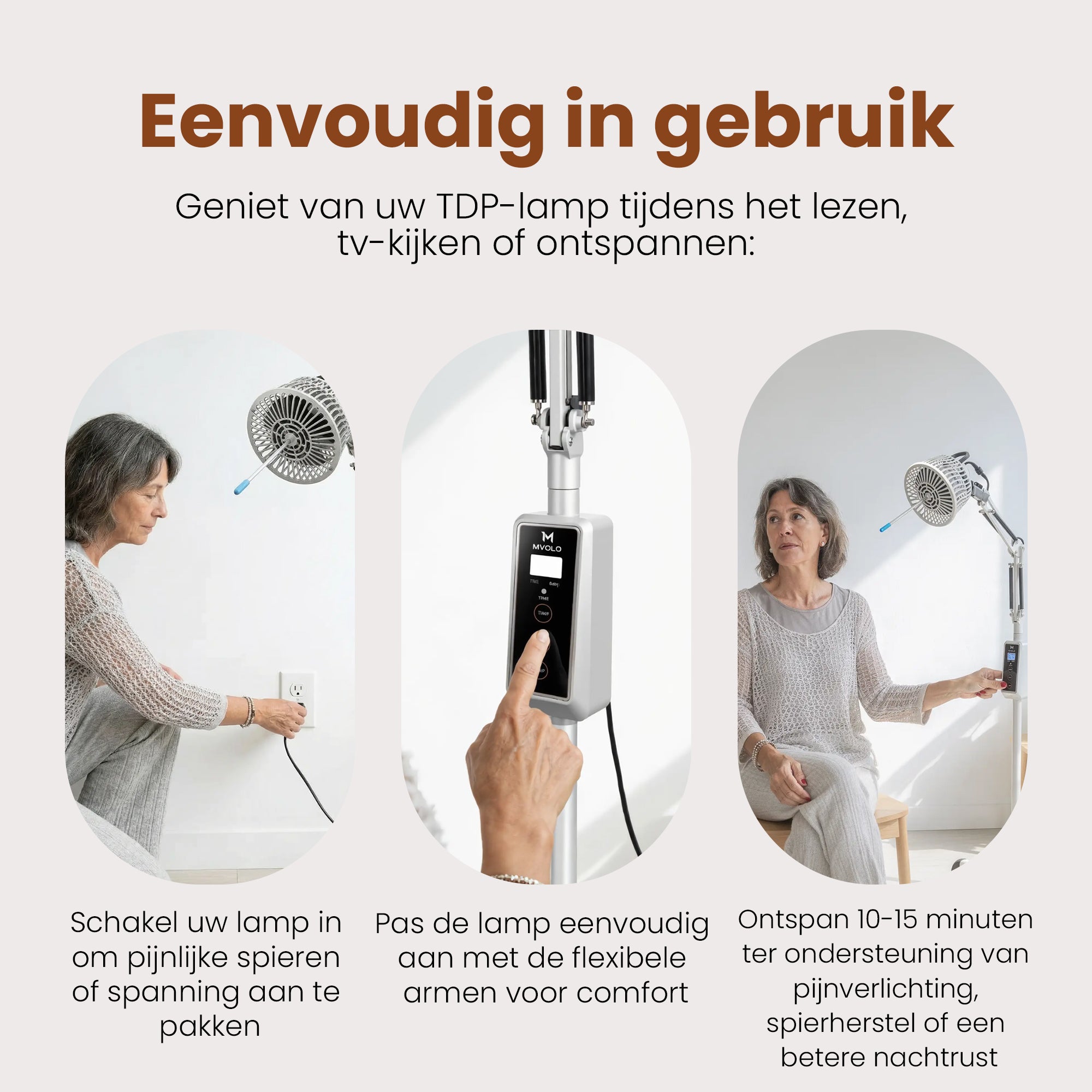 Met de Mvolo TDP/Moxa-lamp haalt u een krachtige, veelzijdige en natuurlijke therapie in huis die pijn verlicht, herstel bevordert en uw algehele welzijn verbetert. Bestel vandaag nog en ervaar zelf de diepgaande voordelen van warmte- en mineralentherapie.