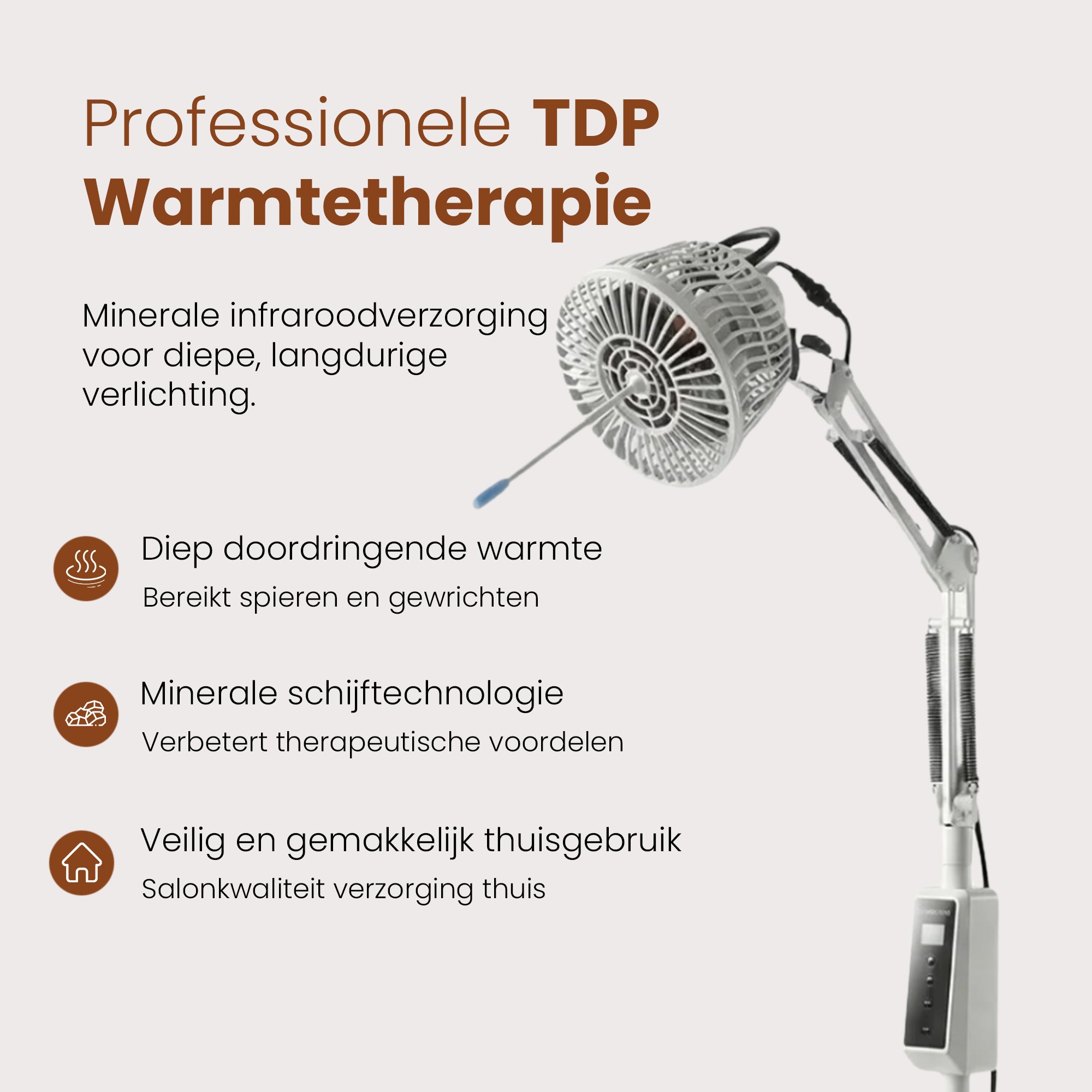 Nee. Een standaard infraroodlamp geeft alleen warmte af, terwijl de TDP-lamp warmte combineert met mineraaltherapie, wat zorgt voor diepere en langdurigere resultaten.